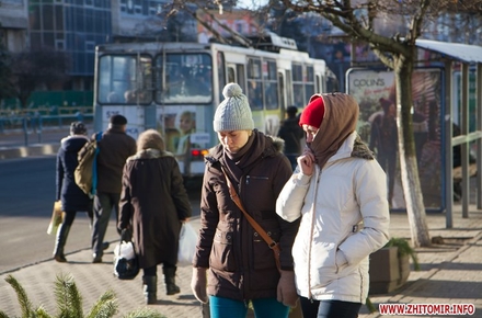 Передноворічний настрій на вулицях Житомира підсилює перший морозець, не вистачає лише снігу. Ранковий іній та -7 за вікном змусили житомирян утеплитись.