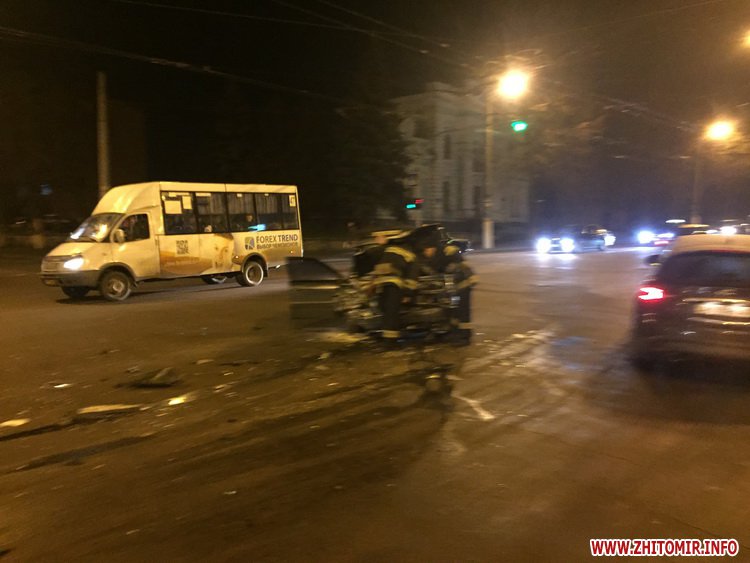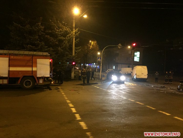 «20 грудня близько 19.55 по вулиці Шевченка в напрямку Фещенка-Чопівського рухався автомобіль Audi 80. У зустрічному йому напрямку рухався автомобіль Mercedes Sprinter, який виконуючи поворот ліворуч не надав перевазі в русі автомобілю Audi та здійснив з ним зіткнення. Внаслідок ДТП пасажирка Audi, 18-річна жителька Житомирського району отримала ушкодження і доставлена до лікарні. Водій автомобіля Audi житомирянин 1995 р.н. Водій автомобіля Mercedes Sprinter – 1994 р.н.», – сказав старший інспектор відділу комунікації ГУ Нацполіції в Житомирській області Василь Кравцов.