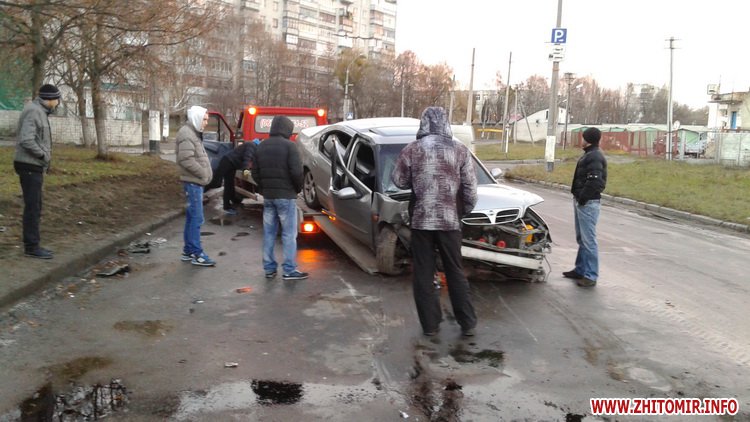 «Є така дорожньо-транспортна пригода. Близько 14.00 год по вул. Космонавтів. Водій автомобіля Nissan з невідомих причин, може не справився з керуванням та здійснив наїзд на електроопору. Внаслідок дорожньо-транспортної пригоди пасажир автомобіля отримав тілесні ушкодження, тяжкість яких визначають медики. При оформленні дорожньо-транспортної пригоди водія на місці не було», – зазначив старший інспектор відділу комунікації ГУ Нацполіції в Житомирській області Василь Кравцов.