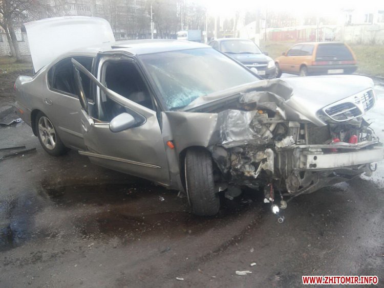 У Житомирі на на вулиці Космонавтів близько 14.00 год автомобіль Nissan врізався в електроопору.