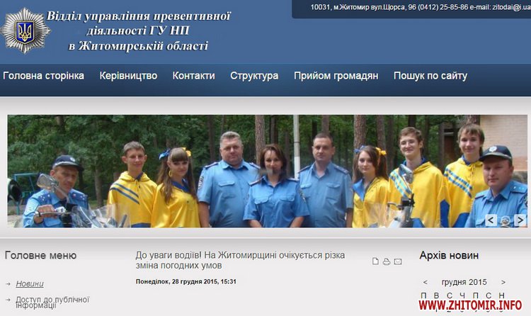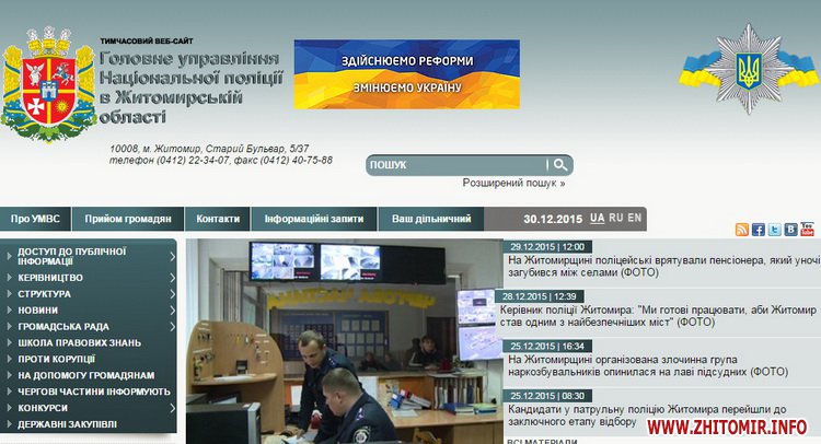 Станом на 30 грудня замість назв відомств «Управління МВС України в Житомирській області» та «Управління ДАІ в Житомирській області» зазначені Головне управління Національної поліції в Житомирській області та Відділ управління превентивної діяльності ГУ НП в Житомирській області (із визначення в інтернеті, превентивна діяльність - така, що направлена на випередження).
