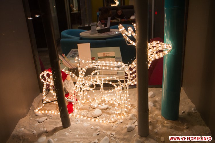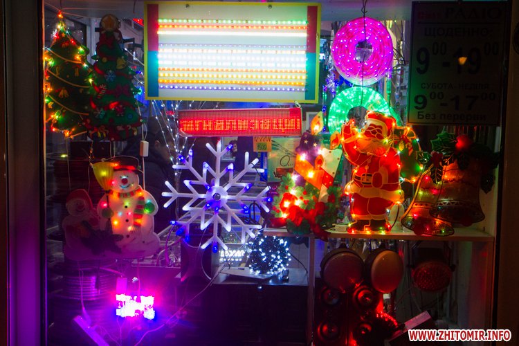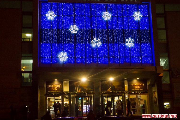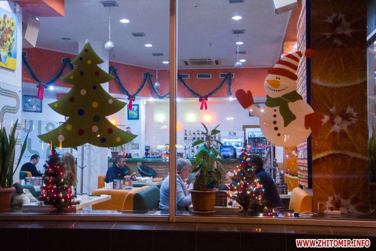 Лічені дні залишаються до Нового року. У Житомирі підприємства, кафе, ресторани та вулиці міста вже «одягнені» у святкову ілюмінацію. На вікнах, деревах будинках можна побачити різні новорічні прикраси. Житомиряни готуються святкувати.