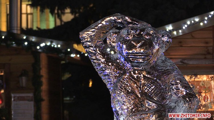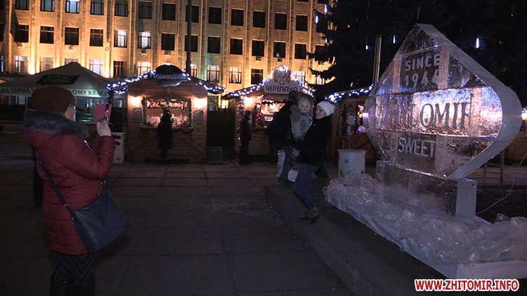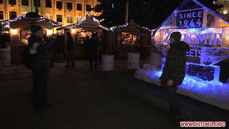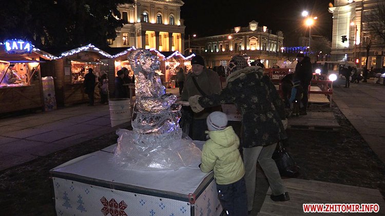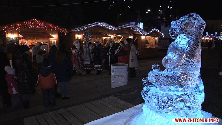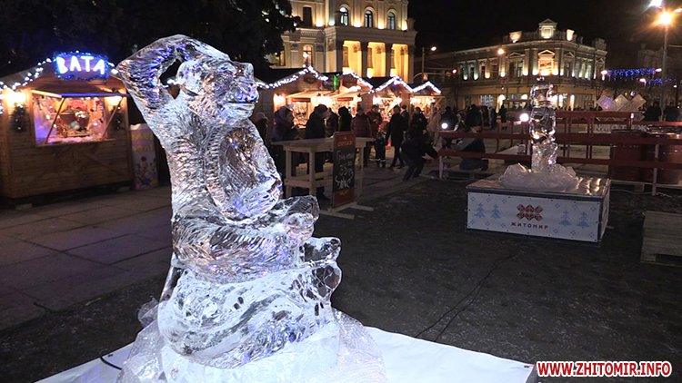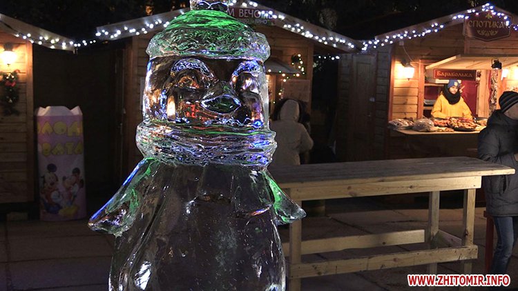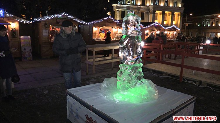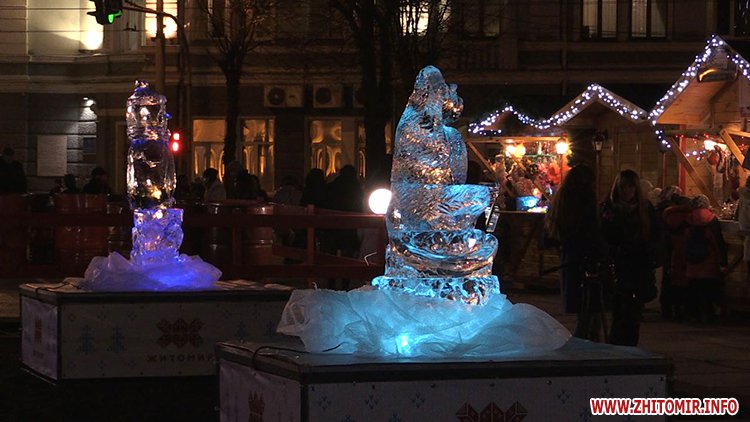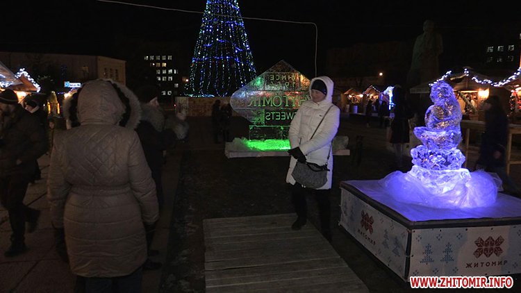 Ввечері 30 грудня на Різдвяному ярмарку на майдані Корольова запалили льодові фігури.