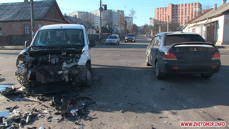 «Загорілося зелене світло. Я починаю рухатися помаленьку і бачу, що летить на мене Peugeot. Він мене в бочину, я чіпляю Mitsubishi Lancer, і відкотився трошки далі», - розповів кореспонденту Житомир.info водій MercedesVito.