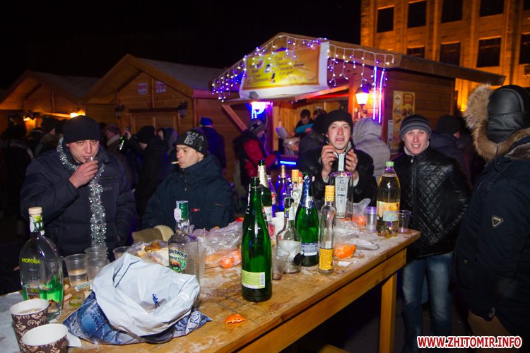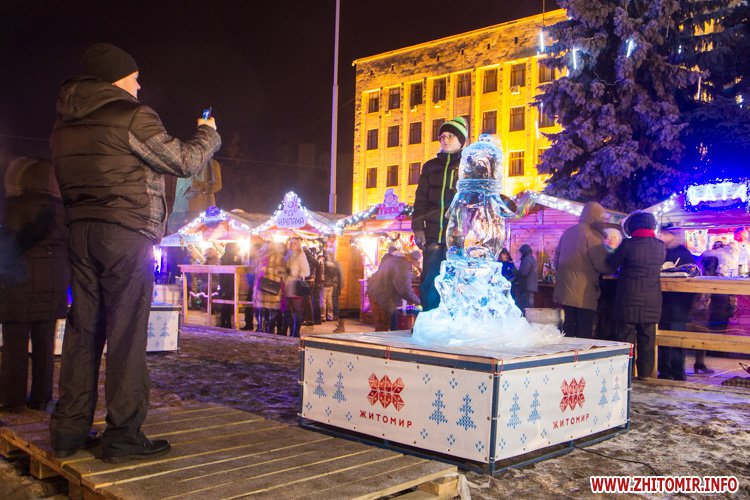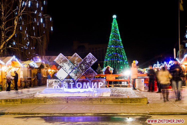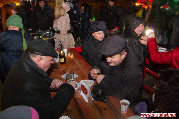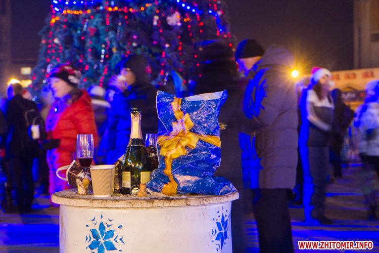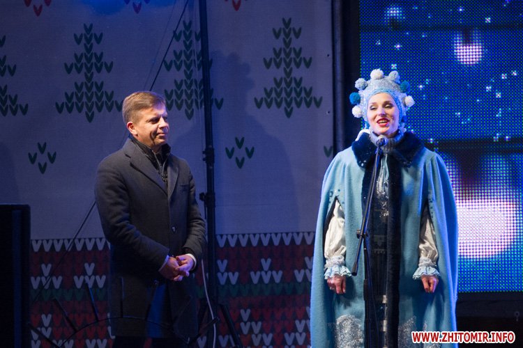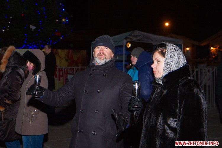 У новорічну ніч працював Різдвяний ярмарок, зі сцени біля головної ялинки вітав житомирян з Новим роком мер Сергій Сухомлин.