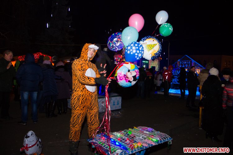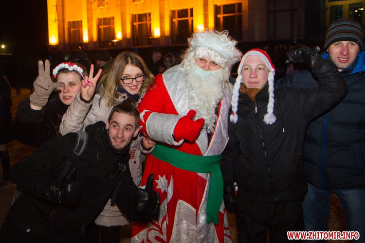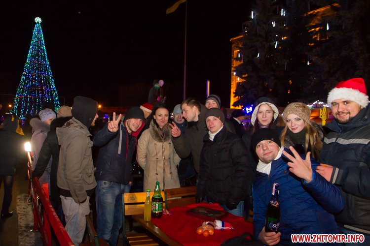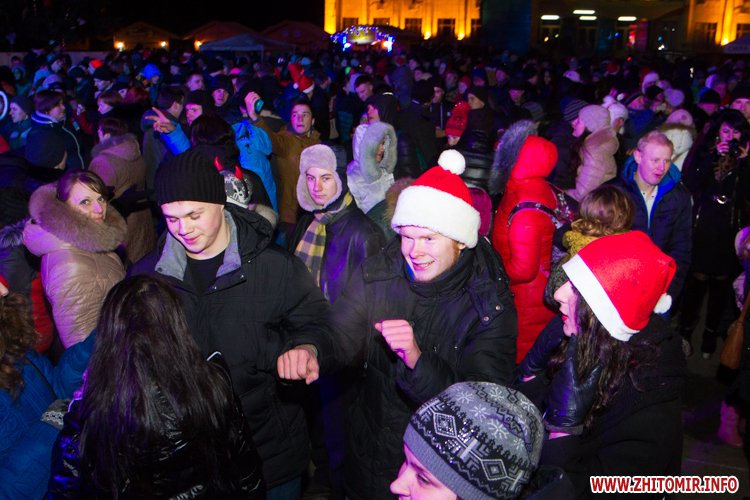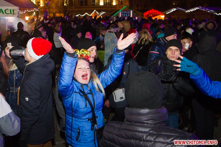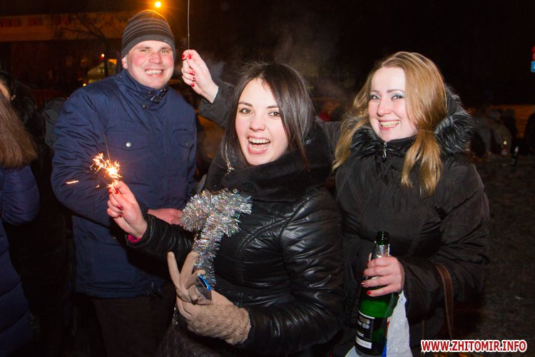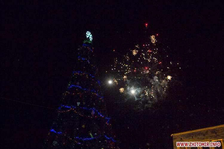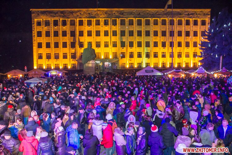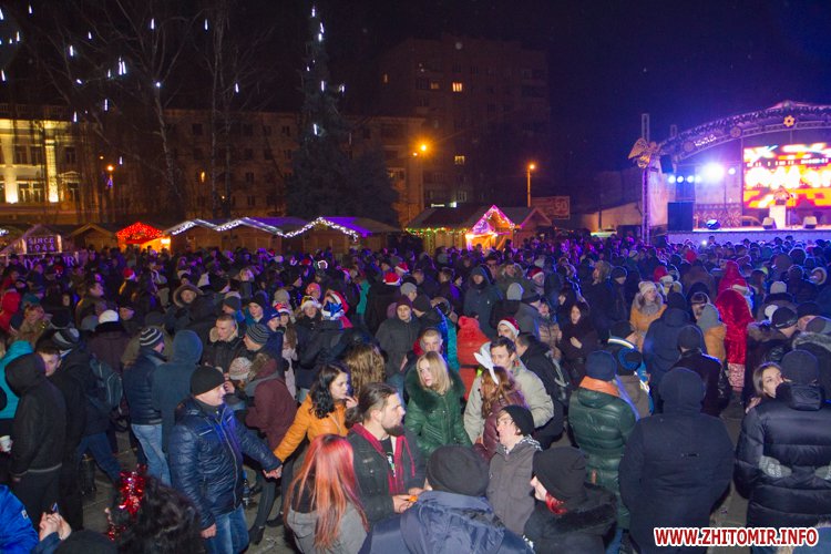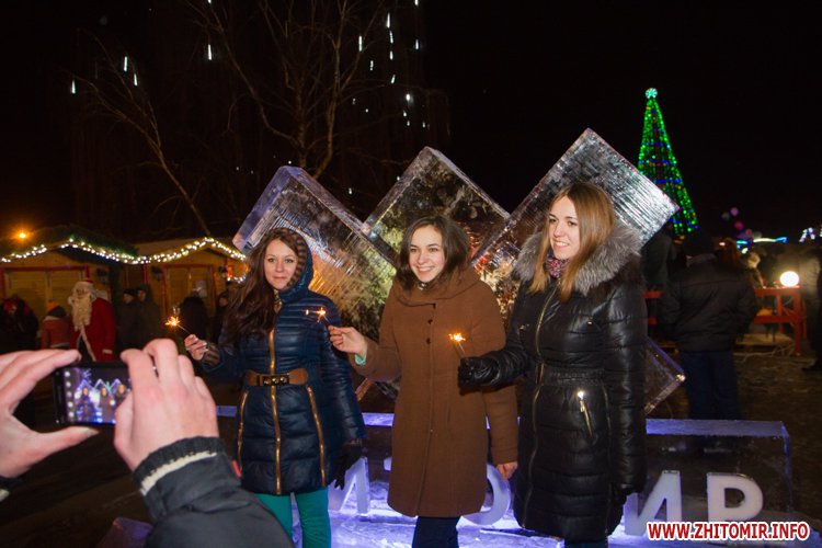 Кілька тисяч житомирян зустрічали новий, 2016 рік, біля головної ялинки міста на майдані Корольова.