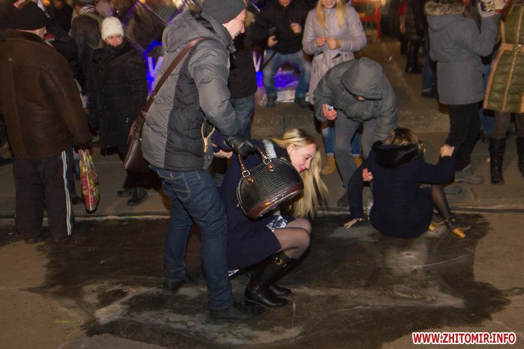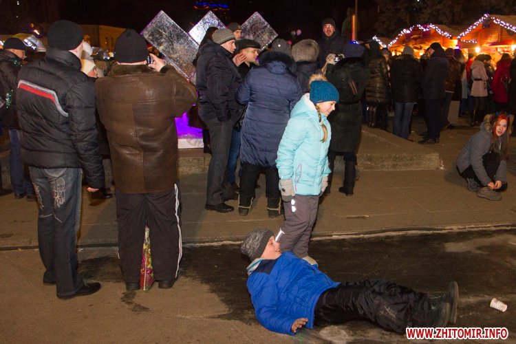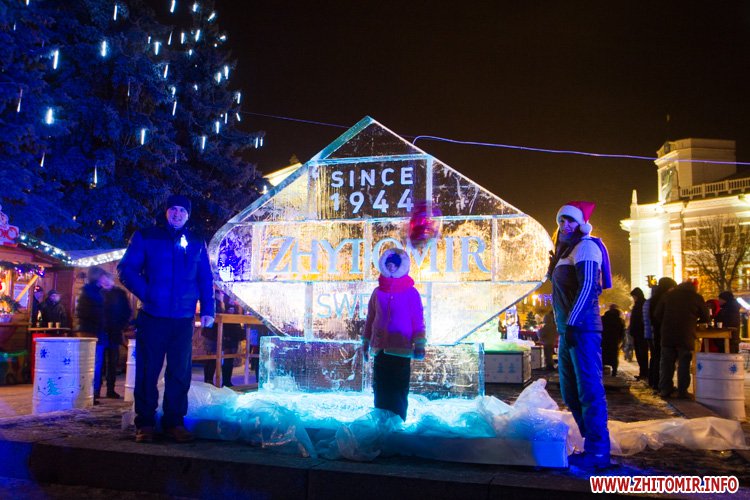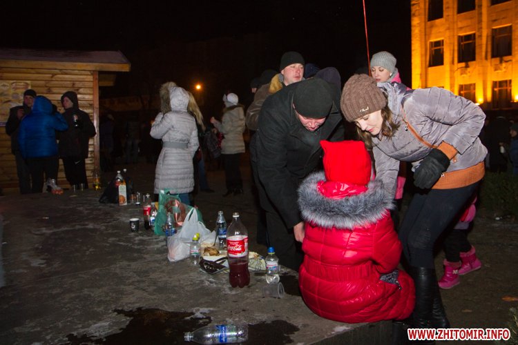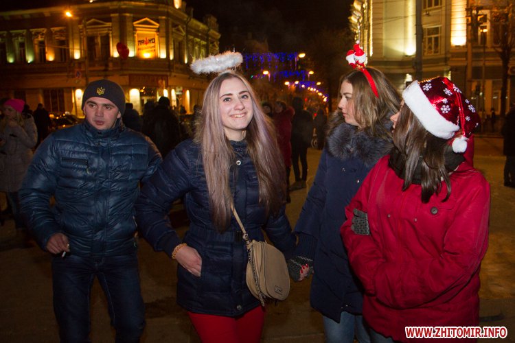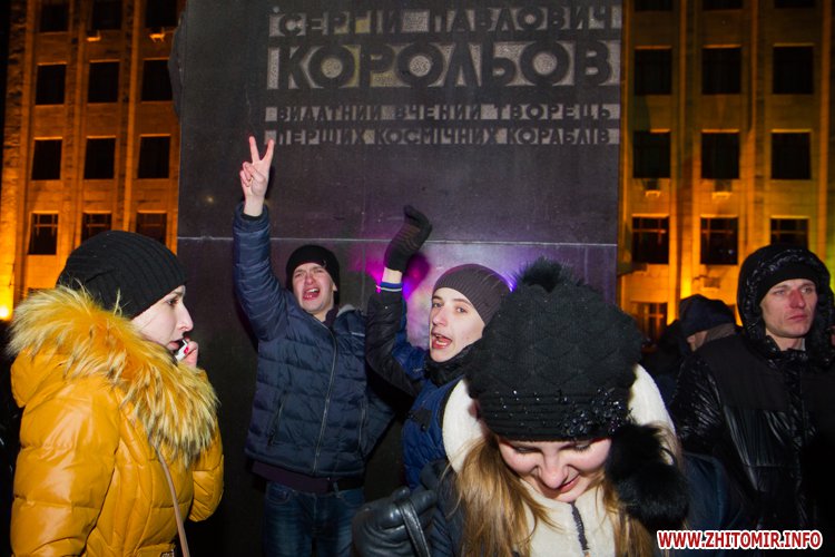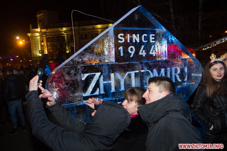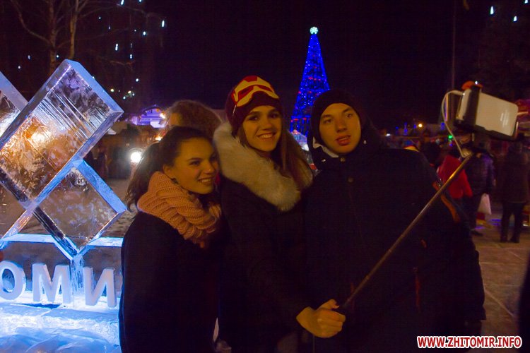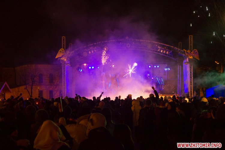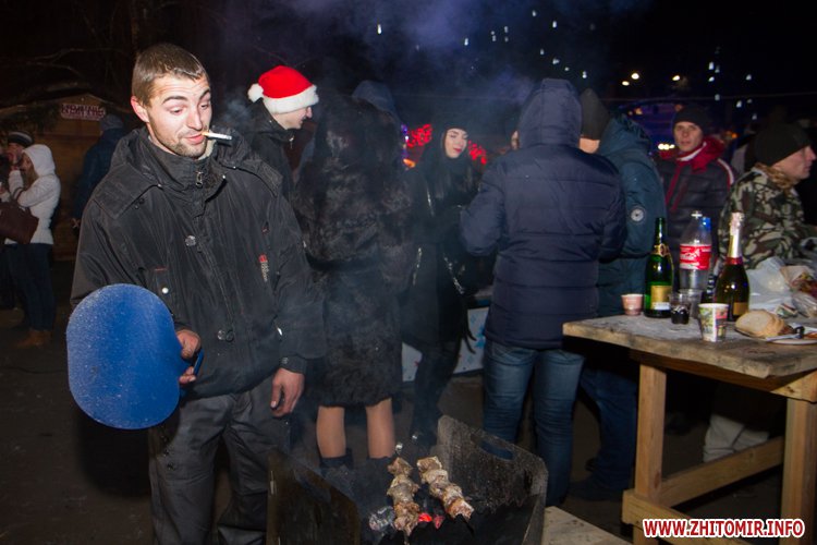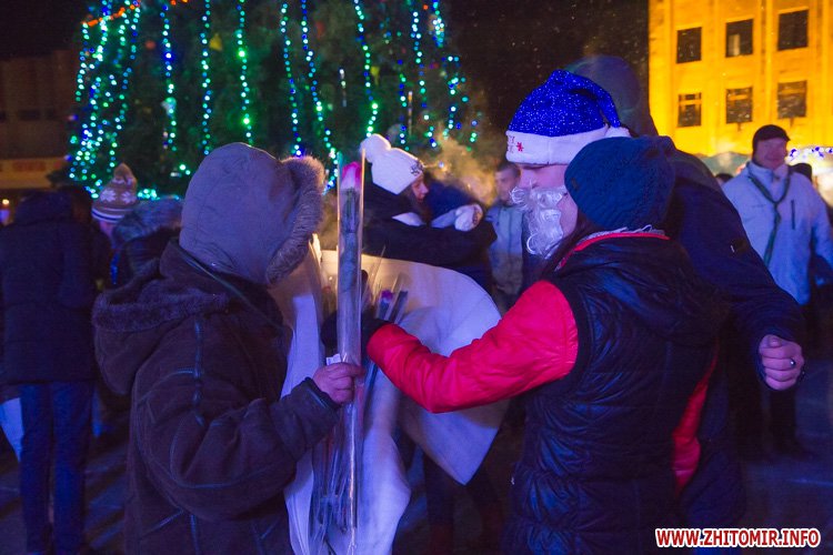 Кілька тисяч житомирян зустрічали новий, 2016 рік, біля головної ялинки міста на майдані Корольова.