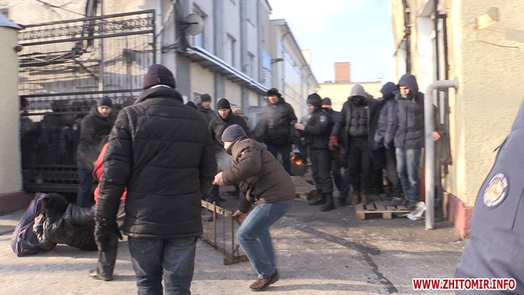 «В адмінкорпусі почали громити вікна, почали виривати грати і кидати димові шашки. Ми тут були, нам пообіцяли, що все буде спокійно. Але сьогодні, коли ми прийшли, був вже вигнаний екскаватор, яким хотіли нищити адмінкорпус і виривати далі всі решітки. Міліція разом з тітушками стоїть по той бік. Людей не впускають, а тітушки там хазяйнують», - каже завідуюча складом готової продукції ТДВ “ЖЛ” Наталія Денисевич.
