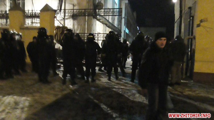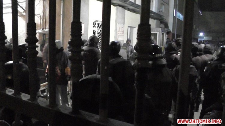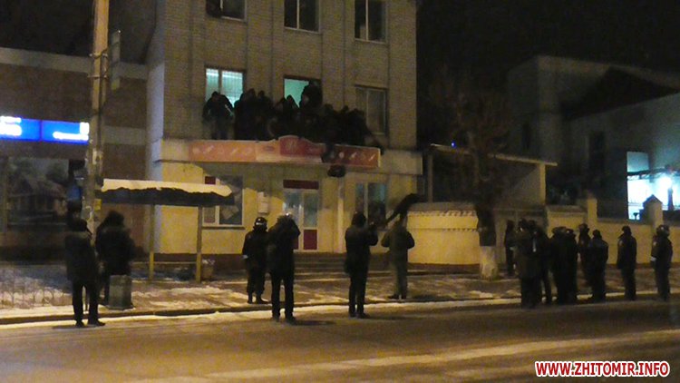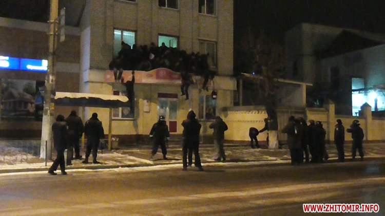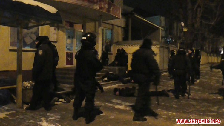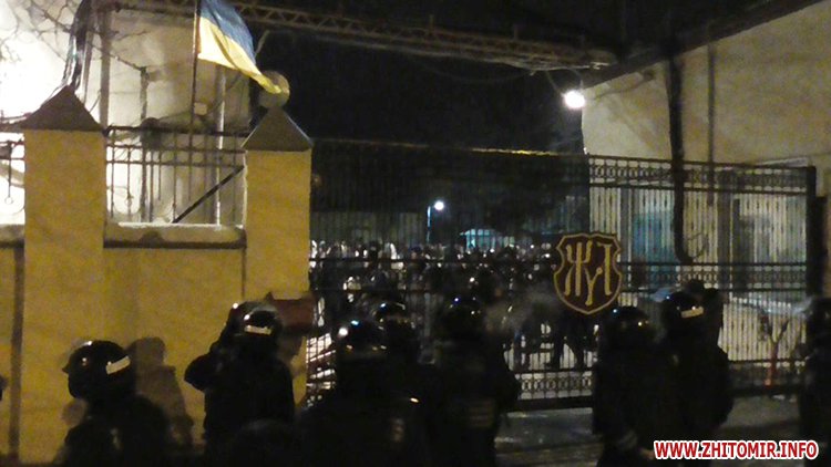 В ніч з 4 на 5 січня штурмували Житомирську кондитерську фабрику. Люди, які знаходилися на території фабрики, стрибали з вікон магазину і їх затримувала поліція.
