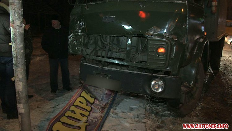 У Житомирі 5 січня близько 17.00 неподалік перехрестя вулиць Велика Бердичівська та Довженка вантажівка врізалася в тролейбус.