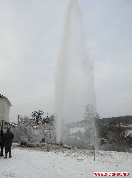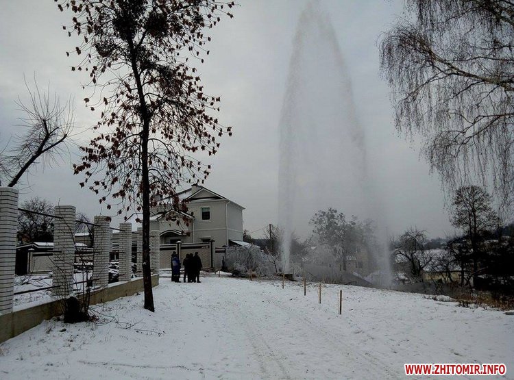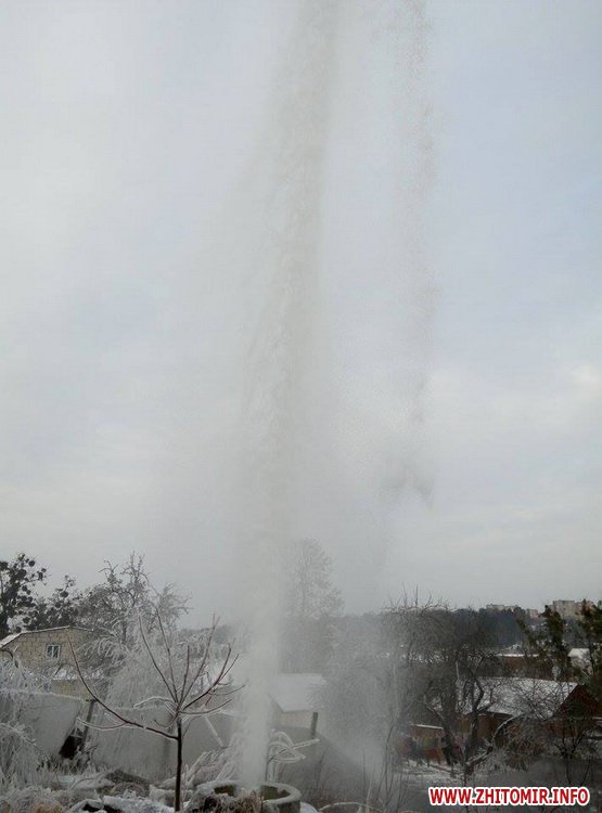 Около 13.00 в частном секторе на Малеванке прорвало трубу и начал бить фонтан высотой около 25-30 метров.