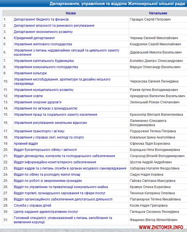 Натомість планують створити два управління та один відділ: управління звернень та діловодства; управління забезпечення діяльності Житомирської міської ради; відділ протокольної роботи.