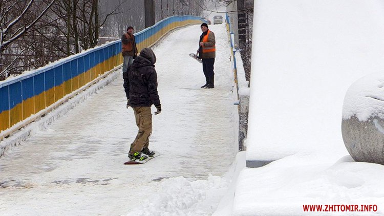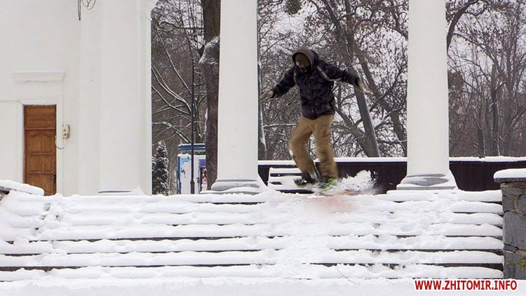 Житомирянин уже 5 лет катается на сноуборде, но удивлен работой коммунальных служб в этом году.