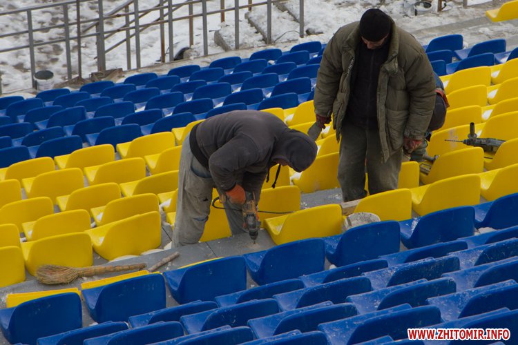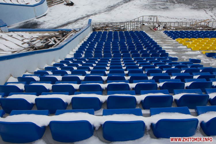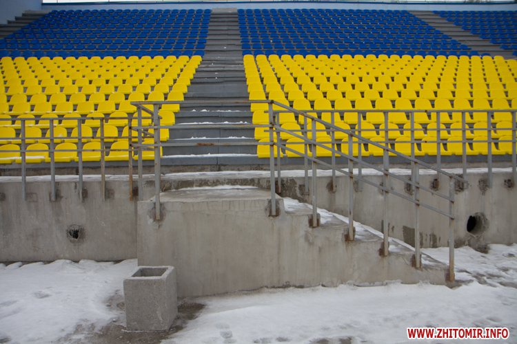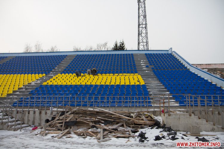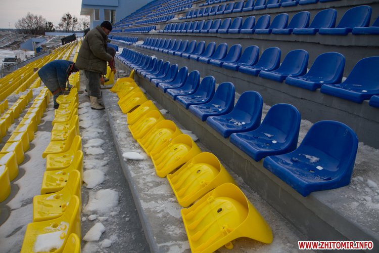 У Житомирі триває реконструкція стадіону «Полісся». На трибуні прожовжують встановлювати жовті та блакитні крісла. Вже завершені секція зліва від коментаторської та по центру, почали встновлювати крісла в правому секторі. Всього на трибуні мають встановити 2500 стільців.
