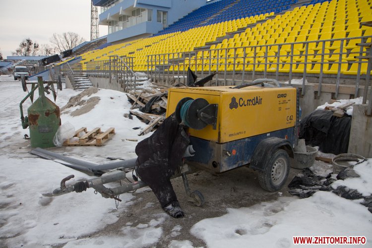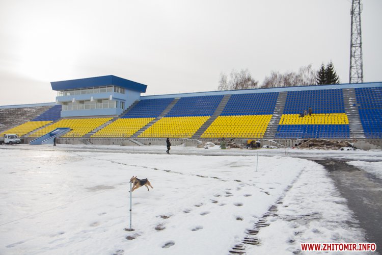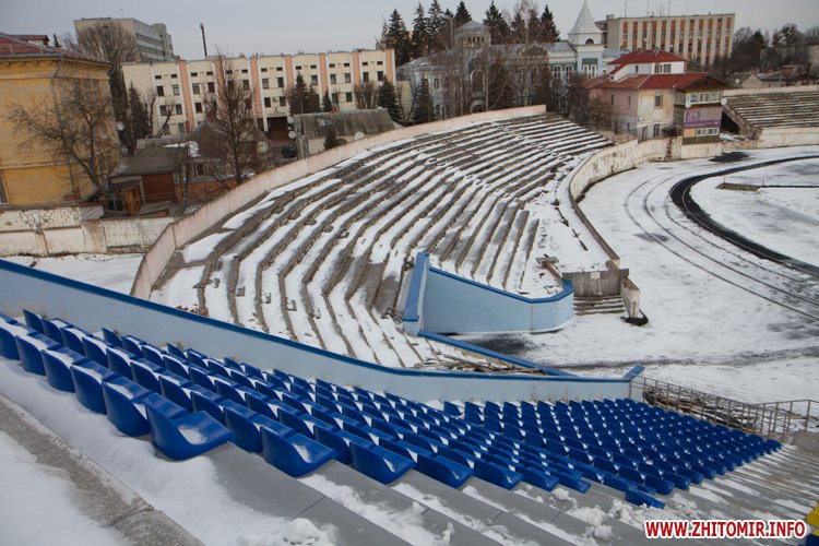 Як повідомляв Житомир.info, житомирські губернатори обіцяють реконструювати центральний стадіон з 2005 року. Оновлений легкоатлетичний манеж губернатор Сергій Рижук урочисто відкрив у грудні 2013 року. У серпні 2014 року Сергій Машковський провів на стадіоні робочу нараду: обіцяв звернутися до правоохоронних органів щодо перевірки даного об’єкту та покарати винних у службовому недбальстві. Тоді ж мова йшла про те, що для убезпечення відремонтованого легкоатлетичного манежу від підтікання та руйнування треба зробити ремонт трибуни, який обійдеться обласному бюджету в 3 млн грн. Колишній голова Житомирської обласної ради Віталій Француз говорив, що за виконані роботи на стадіоні треба заплатити з бюджету ще 4,5 мільйони гривень.