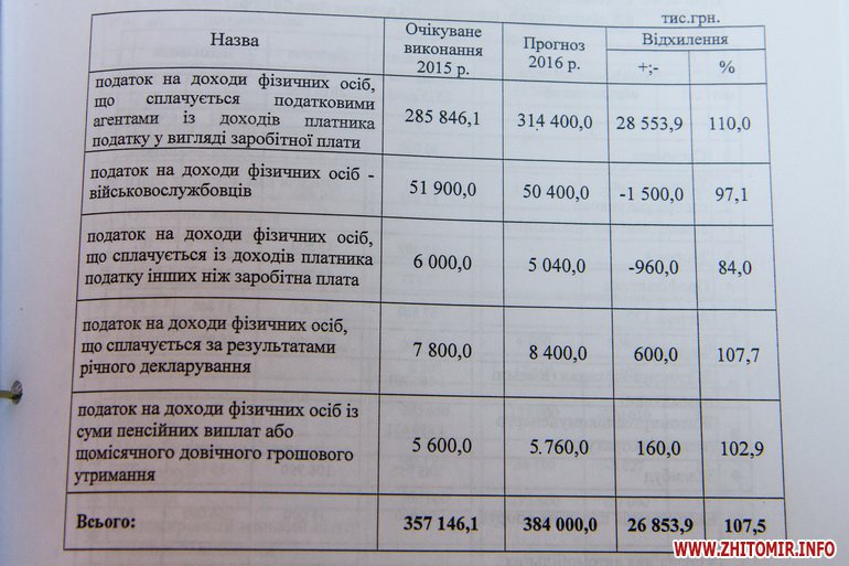 «100 миллионов – это была первая интуитивно осмысленна цифра, которую мы действительно могли бы получить, потому что в конце года мы зарезервировали 40 миллионов гривень в бюджете развития и 45 миллионов мы передавали в бюджет развития: 120 миллионов потенциальный ресурс минус 75 миллионов на ПТУ и 45 – в бюджет развития. Это уже 85 млн грн. И 15 миллионов в следствии действия нового Налогового кодекса мы бы как минимум получили. Но мы работали совместно с налоговой службой и оценивали результат влияния нового Налогового кодекса. Наибольшим ресурсом, конечно, есть ПДФО (податок на доходи фізичних осіб): с одной стороны растет размер минимальной заработной платы, с другой стороны есть процесс полной ликвидации ставки ЕСВ 3,6% (единый социальный взнос), который платит гражданин, и увеличение на 3% ПДФО. Т.е. предприятия, те плательщики, которые у нас обсчитаны и в базе есть, они имеют возможность не платить ЕСВ и увеличить объем ПДФО на 3%. Налоговая критиковала этот момент в том плане, что вот не будет такого роста, хотя объективно – почему не будет? Если платили «по белому» заработную плату и вдруг убирают ЕСВ и вместо этого на 3% увеличивают ПДФО, то нет никаких причин не платить. А теперь простая арифметика – 3% от той базы, которая у нас была (в проекте бюджета прогнозировали 314,4 млн грн поступлений от ПДФО), по нашим расчетам это 76 миллионов дополнительных поступлений. По данным налоговой – значительно меньше», - сказал Сергей Гаращук.