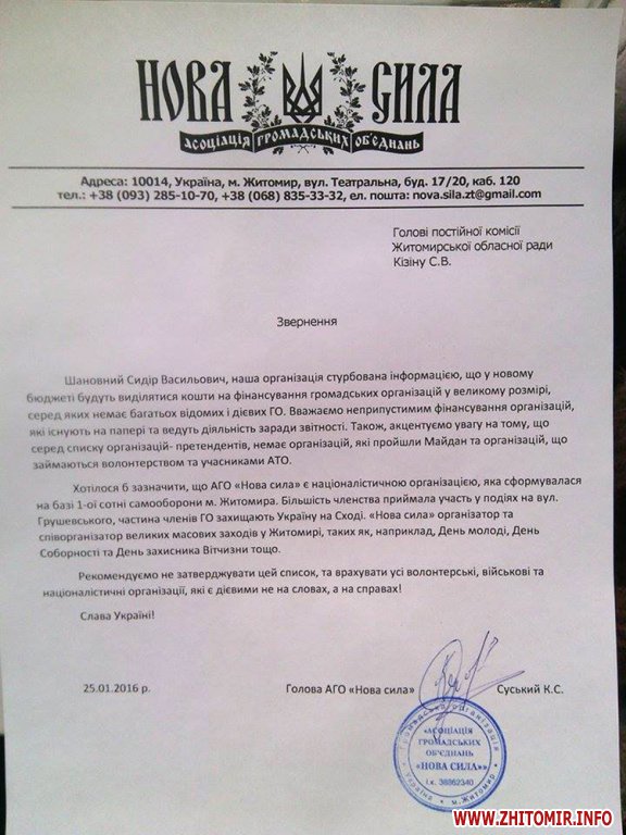 Не допустити фінансування громадських організацій, які існують лише на папері, натомість спрямувати кошти на фінансування відомих і дієвих об’єднань громадян - з такою вимогою Житомирські активісти звернулися до депутатської комісії Житомирської обласної ради.
