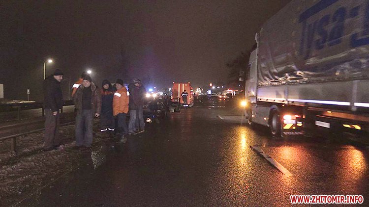 Вечером 27 января возле села Глубочица Житомирского района столкнулись грузовик и легковой автомобиль Audi.