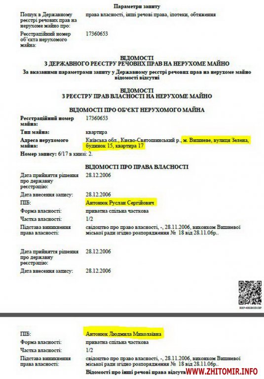 Про це стало відомо з Реєстру прав на нерухоме майно – повідомляє сайт «Наші гроші».