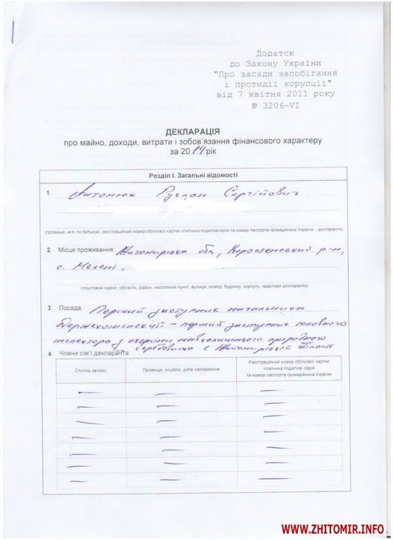 «У майновому реєстрі відомостей про продаж якоїсь нерухомості Антонюком не значиться. При цьому більшу частину доходу за той рік – 749 тис грн. – Антонюк витратив на купівлю Mercedes Benz S500 2010 року випуску. Також він володів на той час автомобілем Skoda Octavia A5 2011 року. Згідно з цією ж декларацією, станом на 2014 рік чиновник не мав ні квартири, ні земельних ділянок. Разом з тим, за даними майнового реєстру, він разом із Людмилою Антонюк є власником квартири у Вишневому ще з 2006 р», - зазначають «Наші гроші».