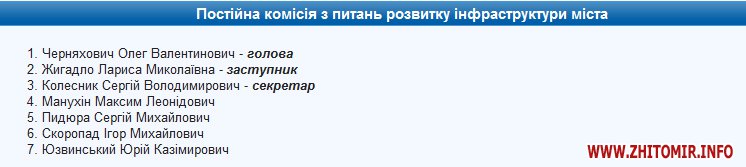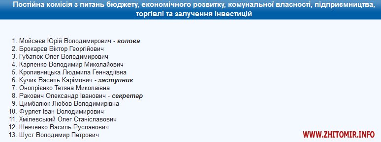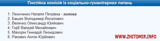 Проект рішення сесії про внесення змін до складу постійних комісій Житомирської міської ради 27 січня опублікований на сайті міськради.