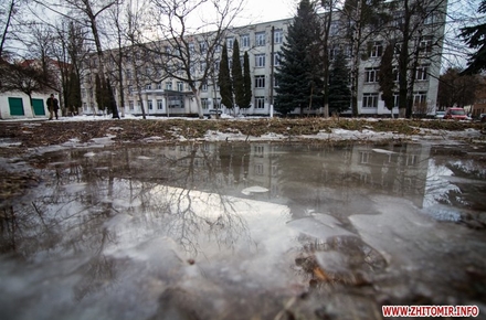 Вже третій день у Житомирі спостерігається плюсова температура. Сніг розтає з неймовірною швидкістю. Цілі замети лишають по собі величезні калюжі.