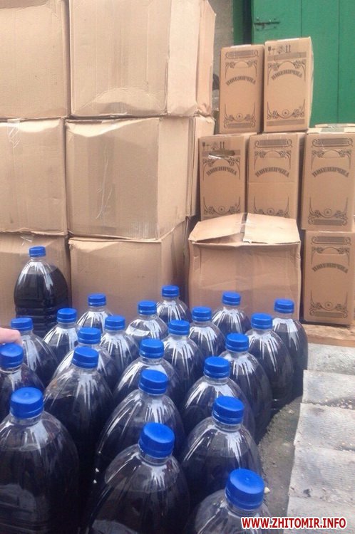 У приватному будинку двох жителів смт Черняхів Житомирської області правоохоронці вилучили понад 1000 л спирту та 700 л горілки і коньяку сумнівної якості вартістю понад 300 тис. грн.