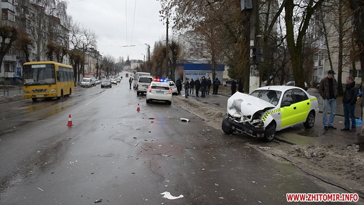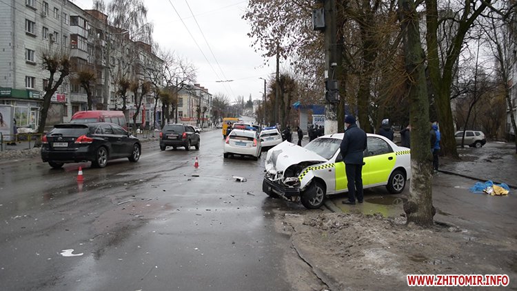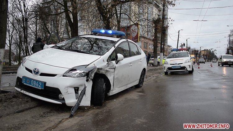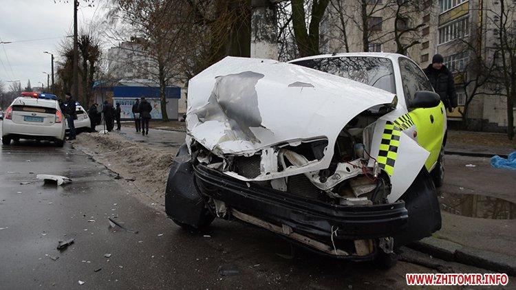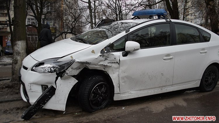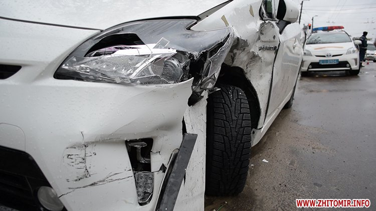 31 січня у Житомирі на вулиці Перемоги сталася аварія за участю поліцейської Toyota Prius та машини таксі.