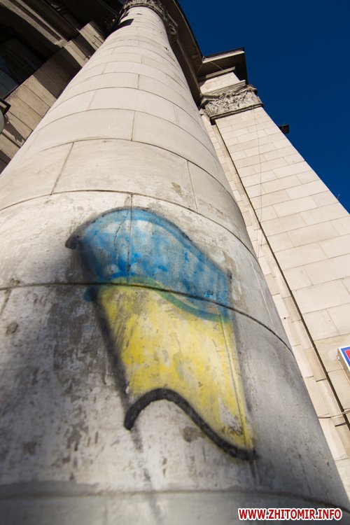 Житомиряни перефарбували у національні кольори пішохідний міст у парку та в’їзні знаки, а на щойно перейменованій вулиці Небесної сотні з’явилося патріотичне графіті. Хвилю патріотизму підхопили у Коростені, селах Чайківка Радомишльського району та Левків Житомирського району.