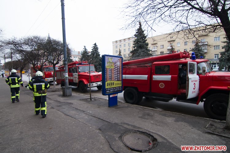 В Житомире днем 1 февраля возле площади Соборной стояли несколько пожарных машин.