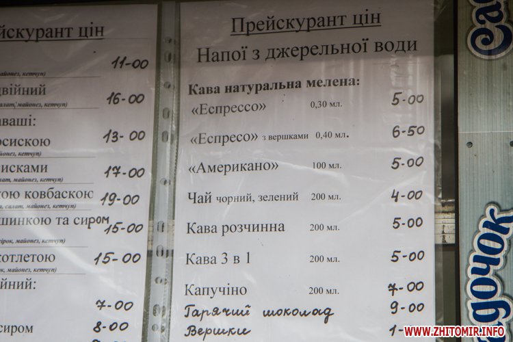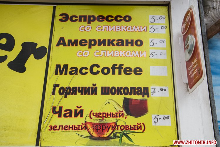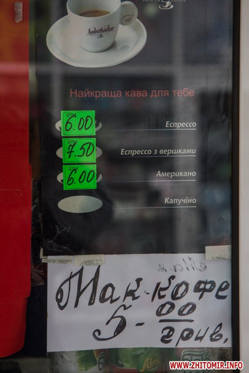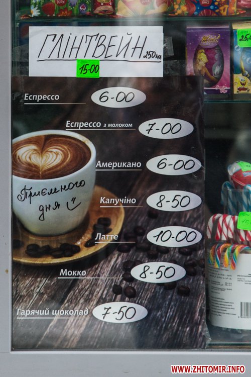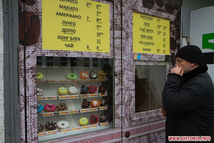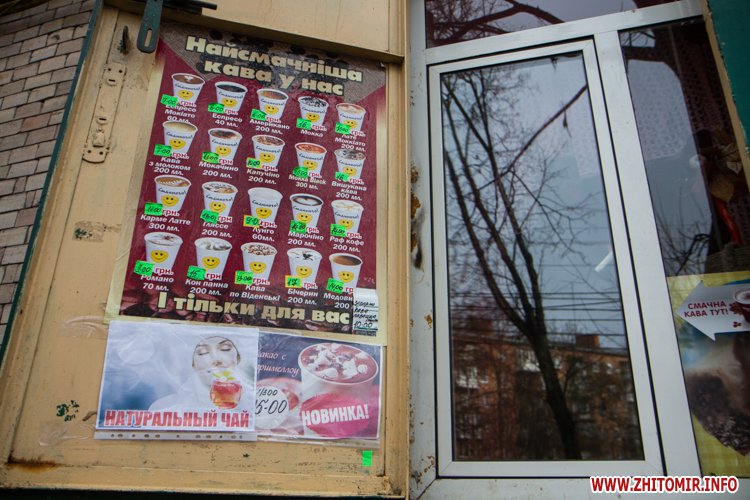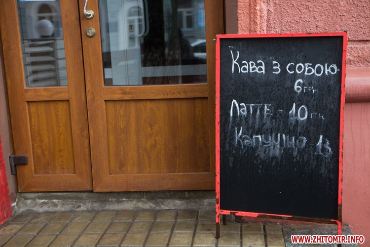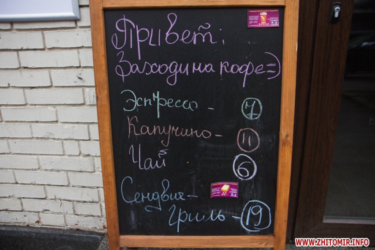 В центре Житомира есть много мест, где можно быстро выпить кофе: маленькие кофейни, киоски или просто кофейные автоматы в магазинах.