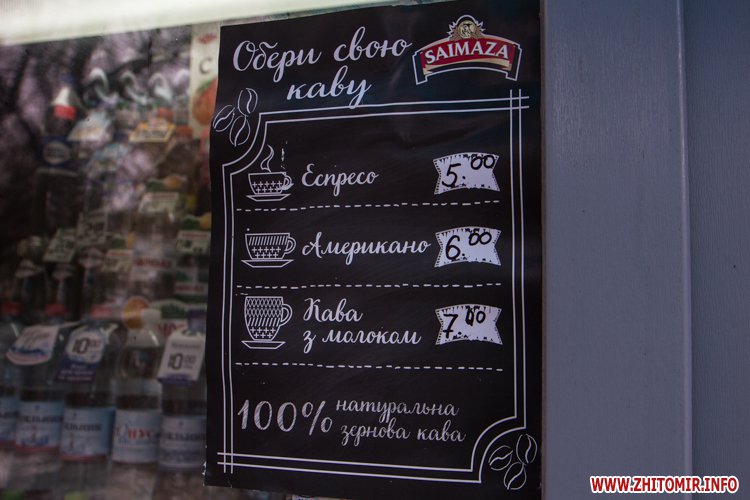 Конечно, Житомиру еще далеко до «кофейного» Львова, но в центре города становится все больше маленьких уютных кафешек и киосков, где готовят вкусный и недорогой кофе. Многие заведения уверяют, что «самый вкусный кофе» именно у них, но настоящие кофеманы точно знают, где вкуснее...