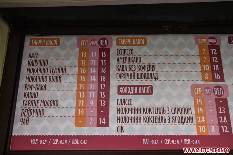 И цены вполне демократичны: стаканчик эспрессо – 5-7 гривень, американо – 5-9 грн, капучино – 10-15 грн. За сливки или молоко придется доплатить еще гривну или полторы.
