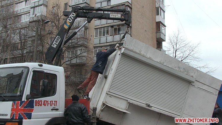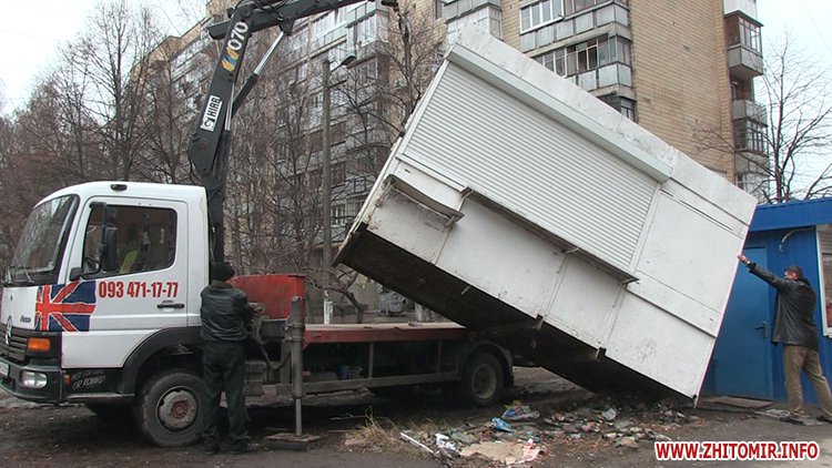 10 лютого в Житомирі демонтували ще один незаконно встановлений МАФ на проспекті Миру, 11. Представник КП «Інспекція з благоустрою» каже: власник кіоску виявив бажання демонтувати кіоск самостійно. До того усі незаконно встановленні МАФи прибирали за бюджетні кошти.