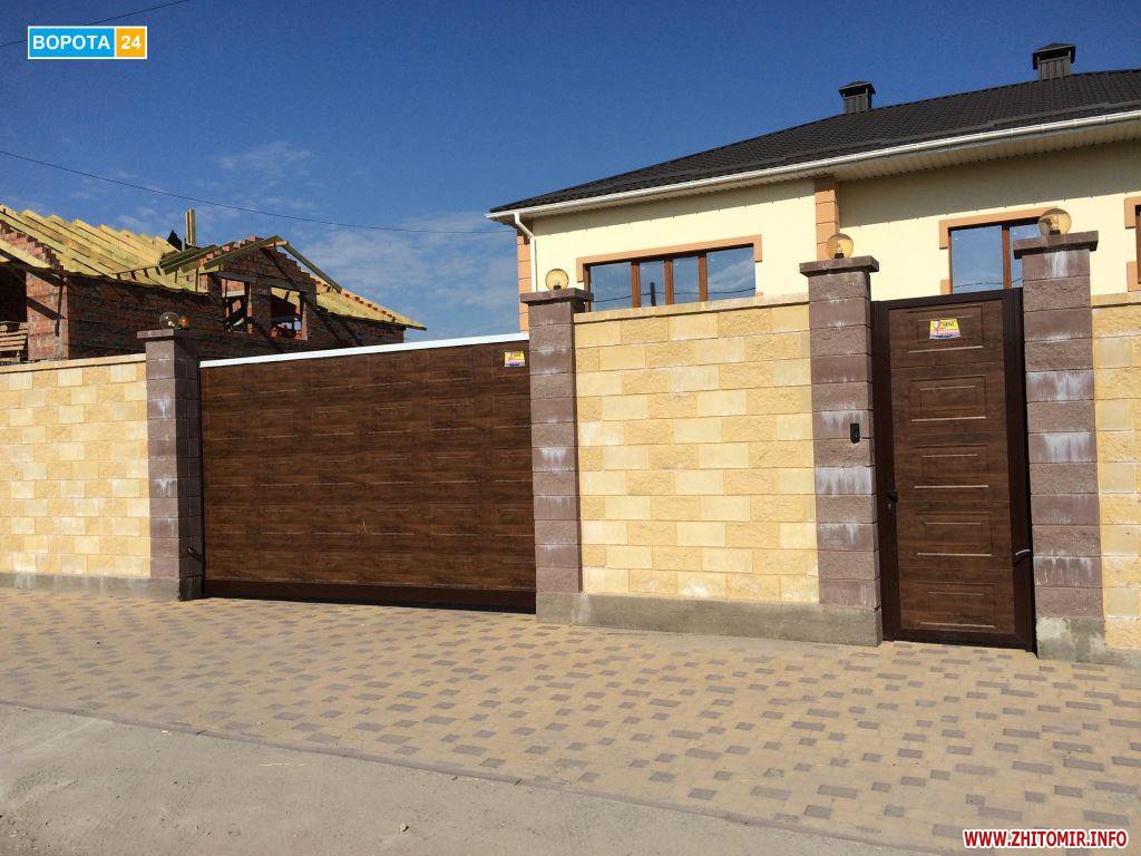 Консольные откатные ворота. Такой тип ворот станет лучшим выбором для климата Украины. воротное полотно крепится к балке, которая, в свою очередь, надежно фиксируется в фундаменте сбоку проезда с помощью роликовых тележек.