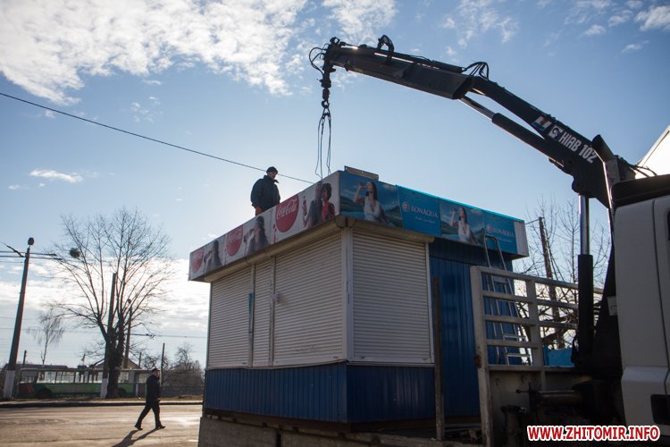 Як повідомляв Житомир.info, вранці 8 лютого у Житомирі демонтували хлібний кіоск на вул.Щорса, 125, в ніч з 8 на 9 лютого – хлібний кіоск біля залізничного вокзалу. 10 лютого на проспекті Миру,11 власник сам демонтував незаконно встановлений МАФ.