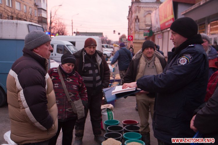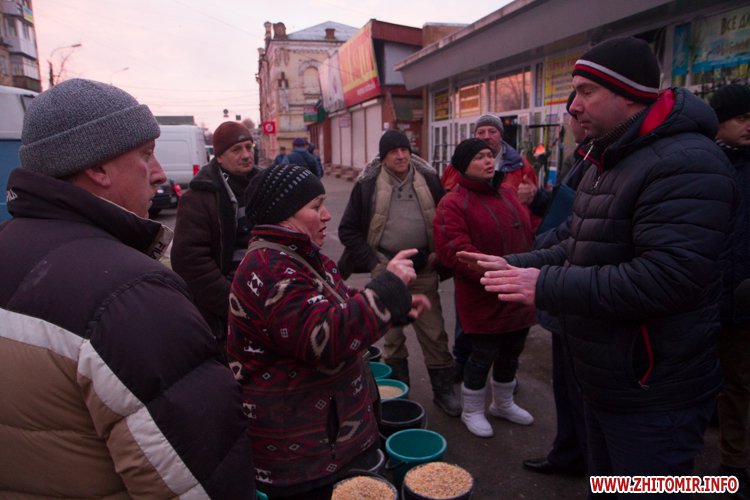 У Житомирі 13 лютого, щойно надворі посіріло, розпочався рейд по боротьбі зі стихійною торгівлею на вул. Хлібній. Звичну для багатьох картину - мішки й відра зі збіжжям та кормами - застали й представники комісії. На торговців зерновими у першу чергу і був спрямований «гнів» ревізорів. Після словесної перепалки торговців таки змусили спорожнити відра і забрати товар з тротуару.