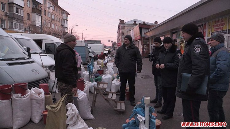 13 лютого із 7-ї ранку працівники поліції, КП «Інспекція з благоустрою» та відділу торгівлі Житомирської міськради влаштували рейд, аби звільнити вул. Хлібну від стихійної торгівлі. У той час на вулиці вже знаходились продавці, які торгують зерновими. Йти з цього місця вони відмовлялися навідріз. Як альтернативу їм запропонували місця на ринках «Житньому», «Хмільники», «Тетерів», «Київський», де за помірну плату від 3 до 6 грн в день вони можуть законно продавати свою продукцію.
