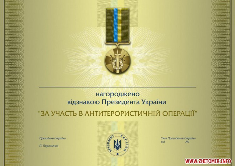 Президент України 17 лютого підписав укази, якими встановлюються відзнаки Президента України «За участь в антитерористичній операції» та «За гуманітарну участь в антитерористичній операції».
