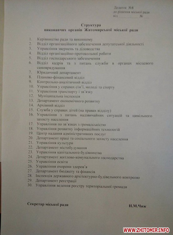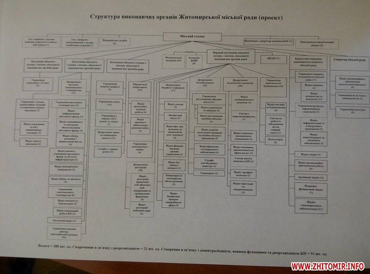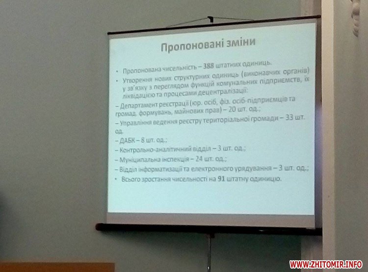 Структуру исполнительных органов Житомирского горсовета изменили: будет 30 подразделений и 390 штатных единиц.