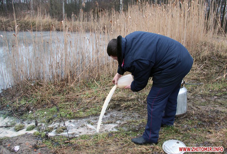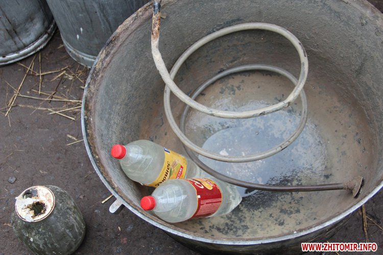 Усього у приміщенні правоохоронці нарахували 16 бідонів ємністю по 40 л з самогонною закваскою. Усе це, а також частини самогонного апарату та 3 л вже готової оковитої, поліцейські вилучили. Цього ж дня і сировину, і горілку у присутності понятих та з відеофіксацією було вилито на місцевих очисних спорудах», – йдеться в повідомленні.