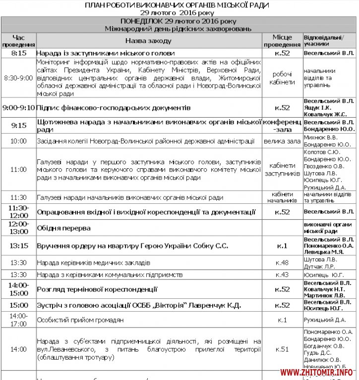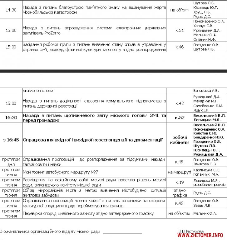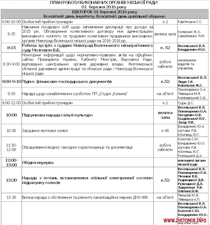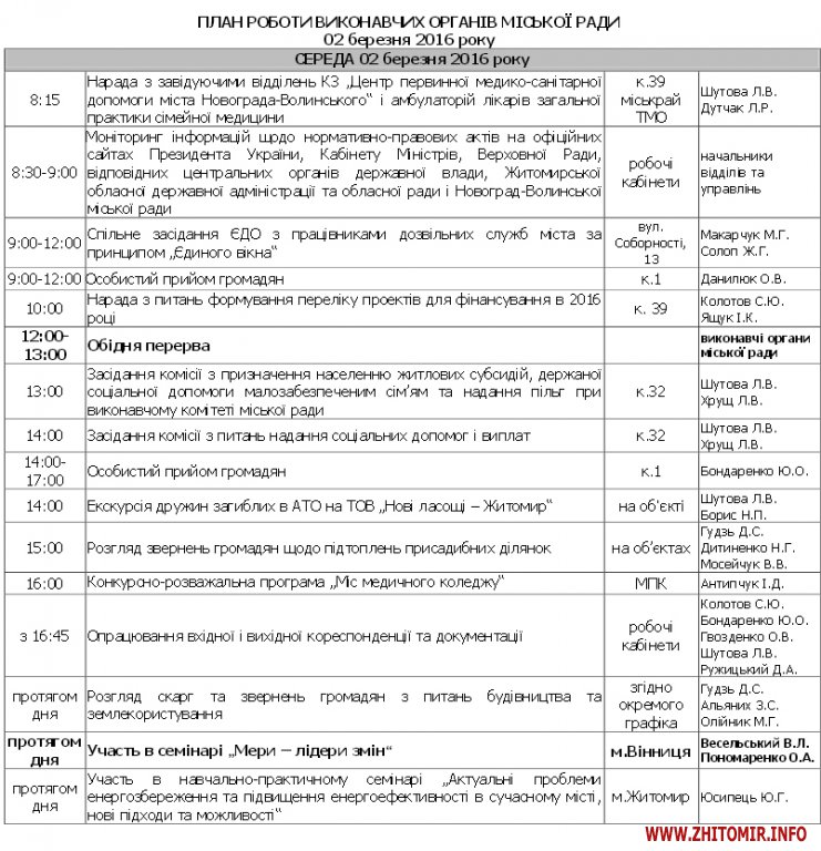 Влада Новограда-Волинського почала на офіційному сайті публікувати щоденні плани роботи чиновників.