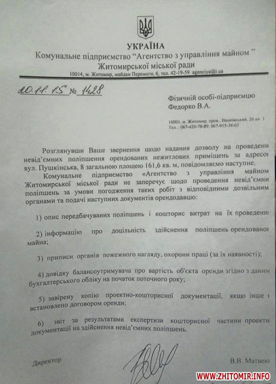 - Там дуже гарний такий лист: «керівник комунального підприємства не заперечує про поліпшення даного приміщення». Зрозуміло, що я як орендар, беручи в оренду приміщення не можу його не поліпшувати, тому що зазвичай 99% - це просто жахливо.