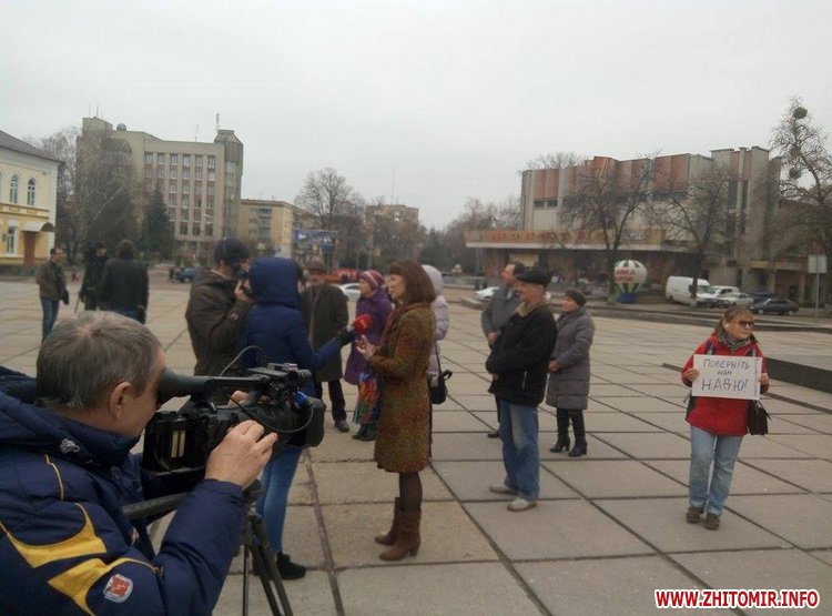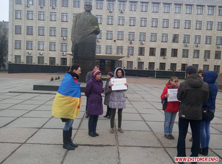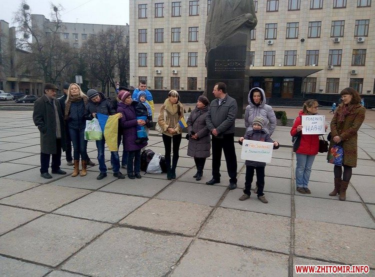 У понеділок, 7 березня, у Житомирі знову відбувся мітинг на підтримку української льотчиці Надії Савченко, яку незаконно утримують у російській в’язниці. Його учасниками стали півтора десятка осіб з символікою й плакатами та приблизно стільки ж журналістів. Активісти-організатори пояснюють невелику явку громадян передсвятковим настроєм та вихідними напередодні свята 8 Березня.