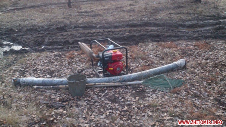 Вихідними, 7 та 8 березня, поблизу с. Обища Олевського району Житомирської області правоохоронці затримали копачів-нелегалів та вилучили 3 мотопомпи, пожежні рукави та водозабірні шланги.