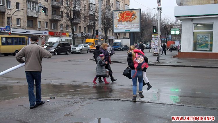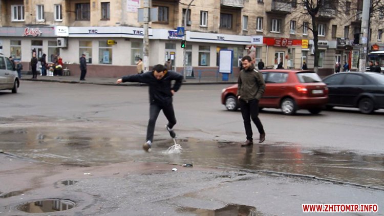 Житомиряни, які намагаються перейти вулицю на перехресті Східна-Київська, змушені перестрибувати великий потік каналізаційних стоків.