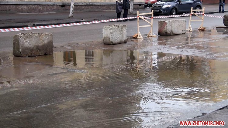 «Бетонна труба, за 40 років верхня частина згнила, верхній ґрунт надавив, і вона провалилася, перекрило воду і пішла вода через верх», - пояснив слюсар КП «Житомирводоканал».