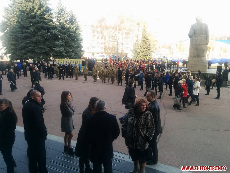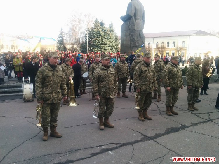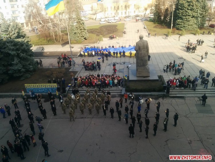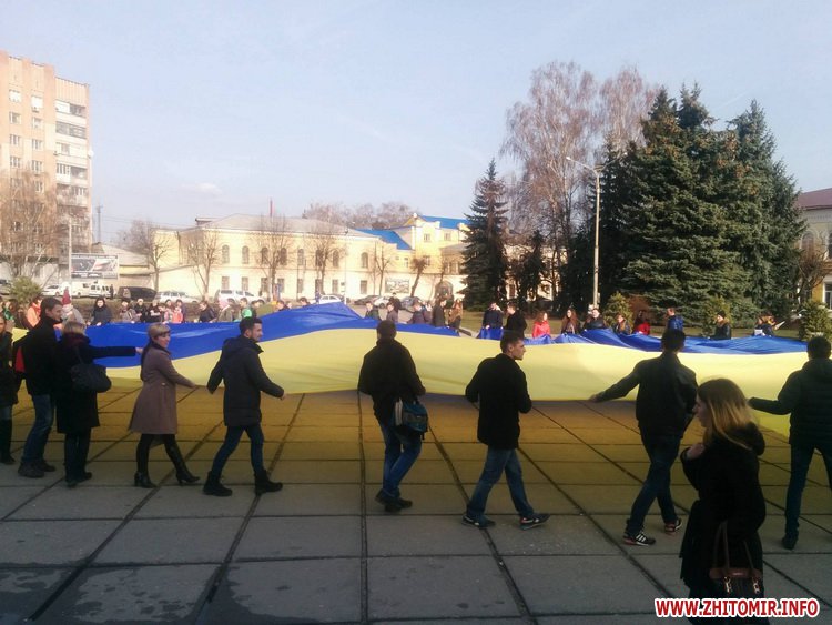 10 березня о 15.00 годині на майдані Корольова почали збиратись житомиряни, щоб відзначити 151 річницю від дня першого публічного виконання Державного Гімну України.