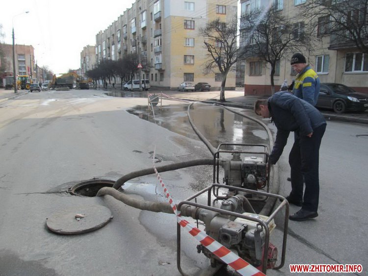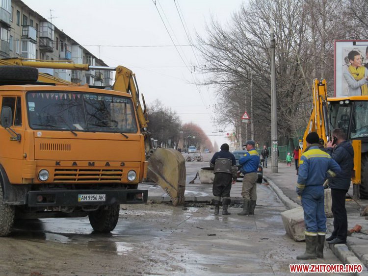 «За перший день роботи працівниками аварійної бригади водоканалу було знято верхній шар асфальту, а також проведено перерозподіл стоків по паралельним колекторам. Оскільки ремонтні роботи такого об'єму провести за короткий термін фізично неможливо, ділянку дороги, на якій працює бригада, буде перекрито до 28 березня. Відповідний лист було направлено до Житомирської міської ради», – прокоментував ситуацію головний інженер КП «Житомирводоканал» Федір Гуйван.