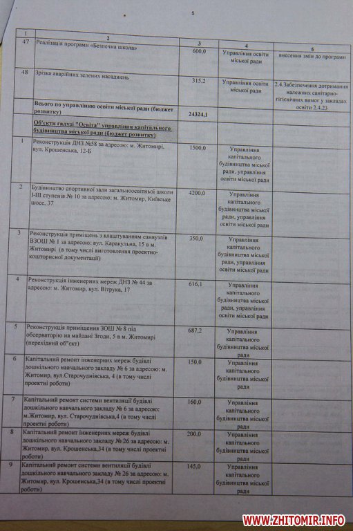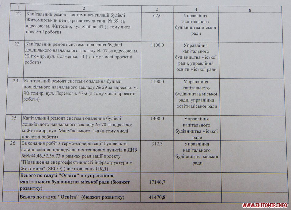 У розпорядженні Житомир.info є перелік об’єктів та заходів, на які збирають витрачати бюджетні кошти.
